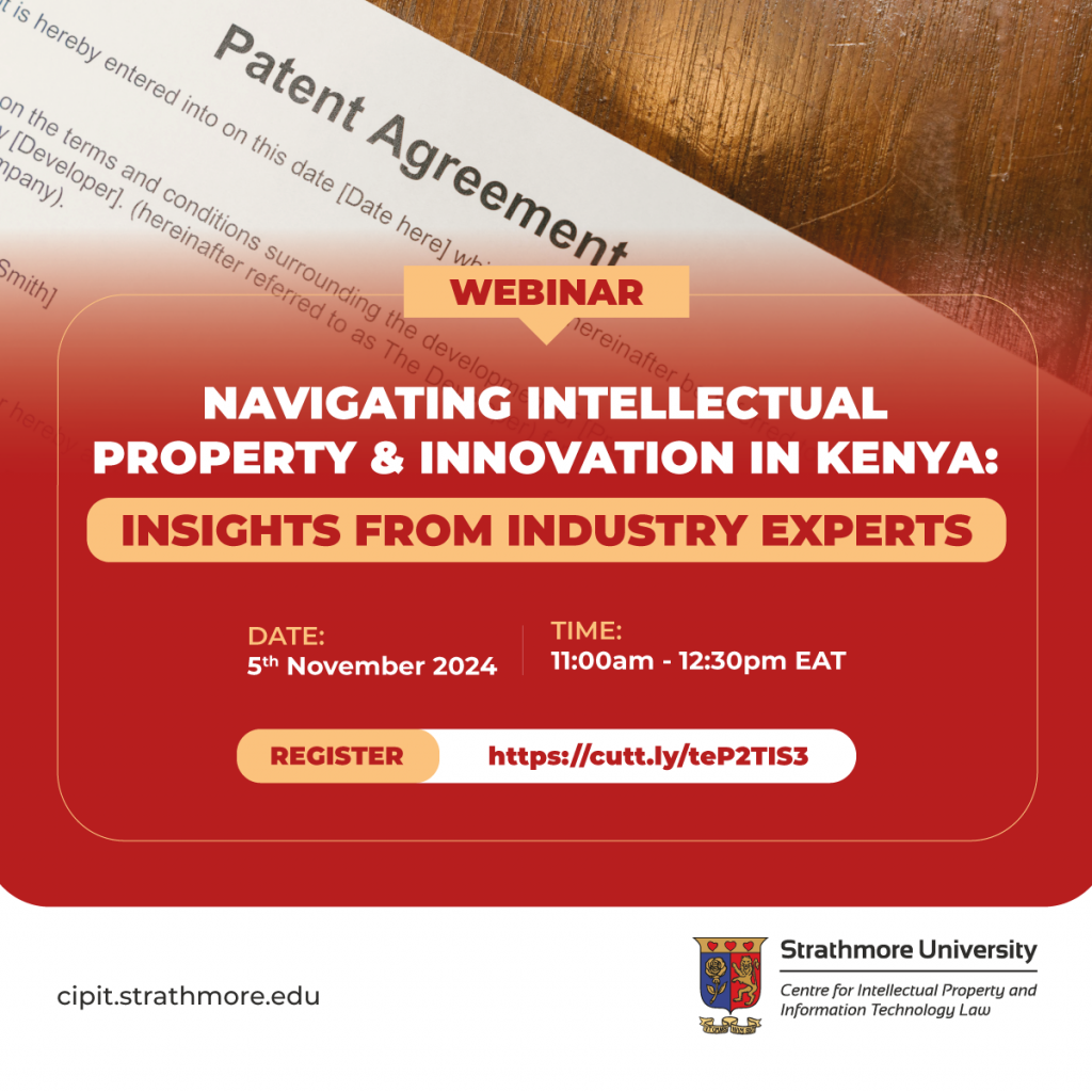 This webinar will introduce ipdatabase.cipit.org, CIPIT’s new platform featuring a collection of registered Intellectual Property (IP) rights in Kenya, including Trademarks, Patents, and Industrial Designs. Further, the webinar will provide valuable insights from industry experts on the importance and impact of IP rights in Kenya. Speakers: