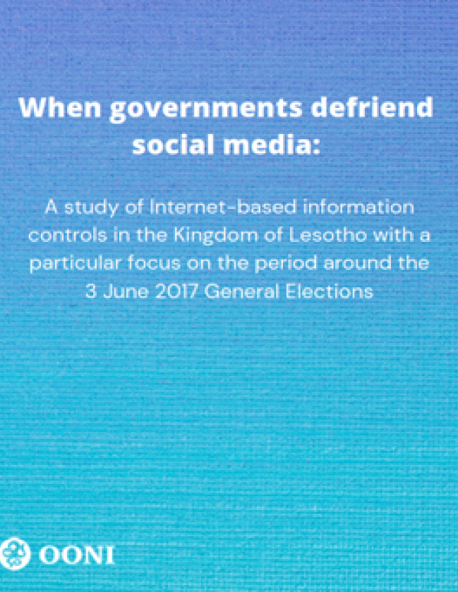 Year: 2017 Project Partner: Open Technology Fund Gwagwa, A. “When Governments Defriend Social Media: A study of Internet-based information controls in the Kingdom of Lesotho with...